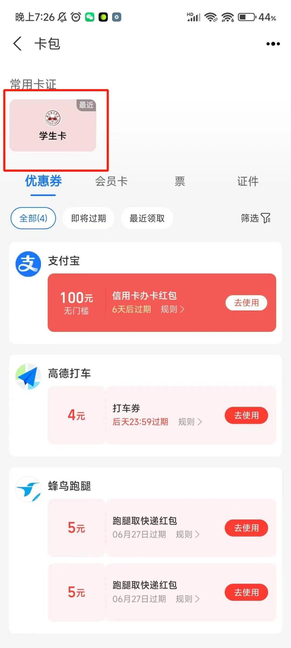 (二)购票途径 支付宝→电子学生卡→校园巴士