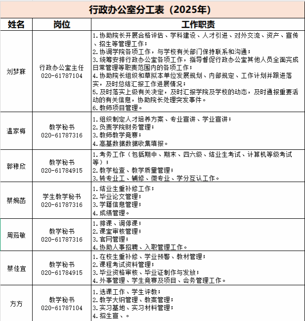 020-61787104 / liumm1@nfu.edu.cn 刘梦寐老师(行政办公室主任)