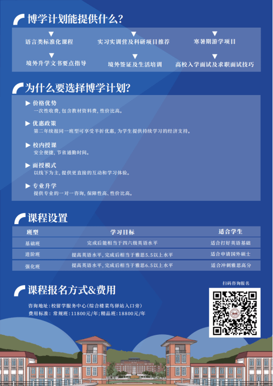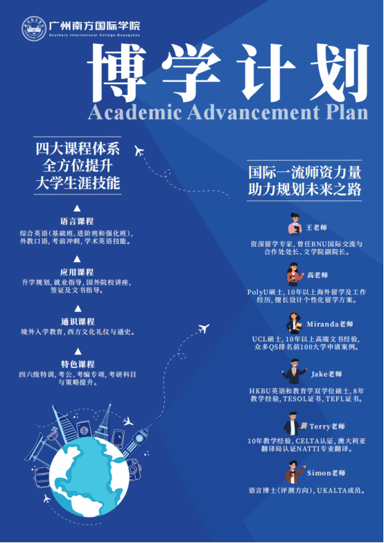 此外,课程紧密贴合境外及海外名校硕士课程的申请要求,为学生铺设了国内深造与国际升学的双通道,积极响应教育部关于高水平教育对外开放的倡议。我们积极引进优质教育资源,全力支持学生留学深造,助力学生拓宽成长边界,成就更加辉煌的未来。