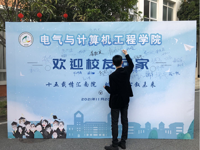 为庆祝南方学院建校15周年,11月20日,电气学院的老师和同学们为回校的电气校友们准备了纪念品和礼物,希望回校的毕业生们能够感受到学院的温暖和情谊,同时也能够体会到学校和学院昂首阔步向前走的精神面貌,来到曾经生活了四年的教学楼,追忆自己的南院时光,与学弟学妹们共话青春回忆。
