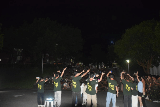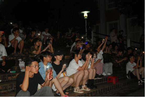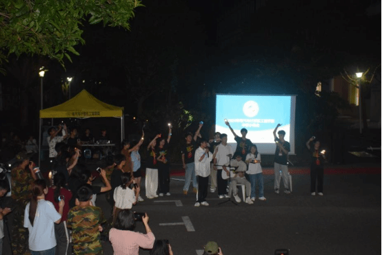 而线下分会场更是热闹非凡,二教门前人声鼎沸,座无虚席。先是艺术中心的同学们为大家献上精心准备的歌唱及舞蹈表演。感受着现场热闹的氛围,新生们也自发的上台表演。她们真挚而富有感染力的演唱,每一个音符、每一声掌声,都是对青春与团结的生动诠释。朋辈辅导员和辅导员们更是被同学们的热情点燃,纷纷上台献唱。随着三轮抽奖的结束,本次中秋晚会也是即将降下帷幕。