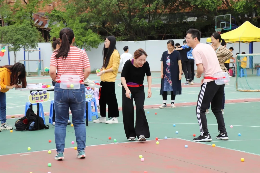 温风和煦的四月,为促进老师和同学们之间的更好的沟通交流,本次运动会设置了很多有趣的项目。许多项目都是需要团队配合,所以比赛的过程也是团队增进默契的过程。珠行万里比的是默契度。抖乒乓球比的是身体灵活度。活动当天,各个游戏地点都有同学们的热情参与。为更好的完成比赛,可爱的老师们也纷纷助力学生团队。