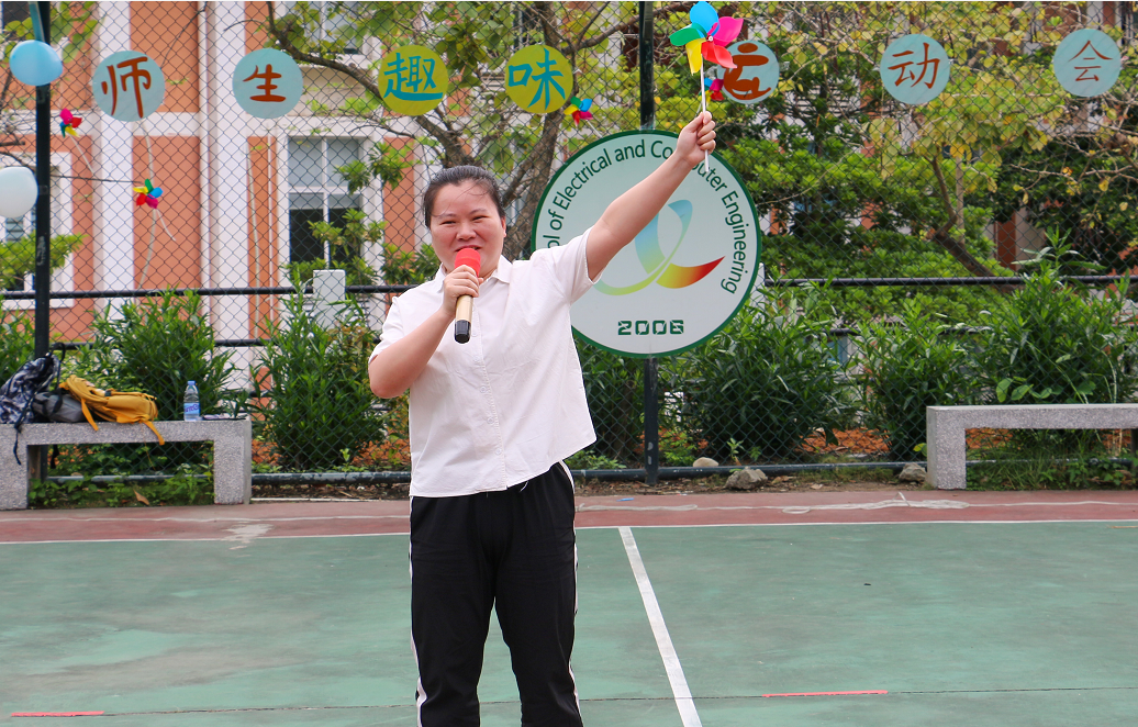 第一个环节由我院艺术中心的同学给大家带来精彩表演。第二个环节是我院党总支副书记兼学工办主任唐玉婷老师致辞。唐老师热情洋溢的发言,鼓舞了同学们,大家热情高涨,主持人宣布趣味运动会正式开始。