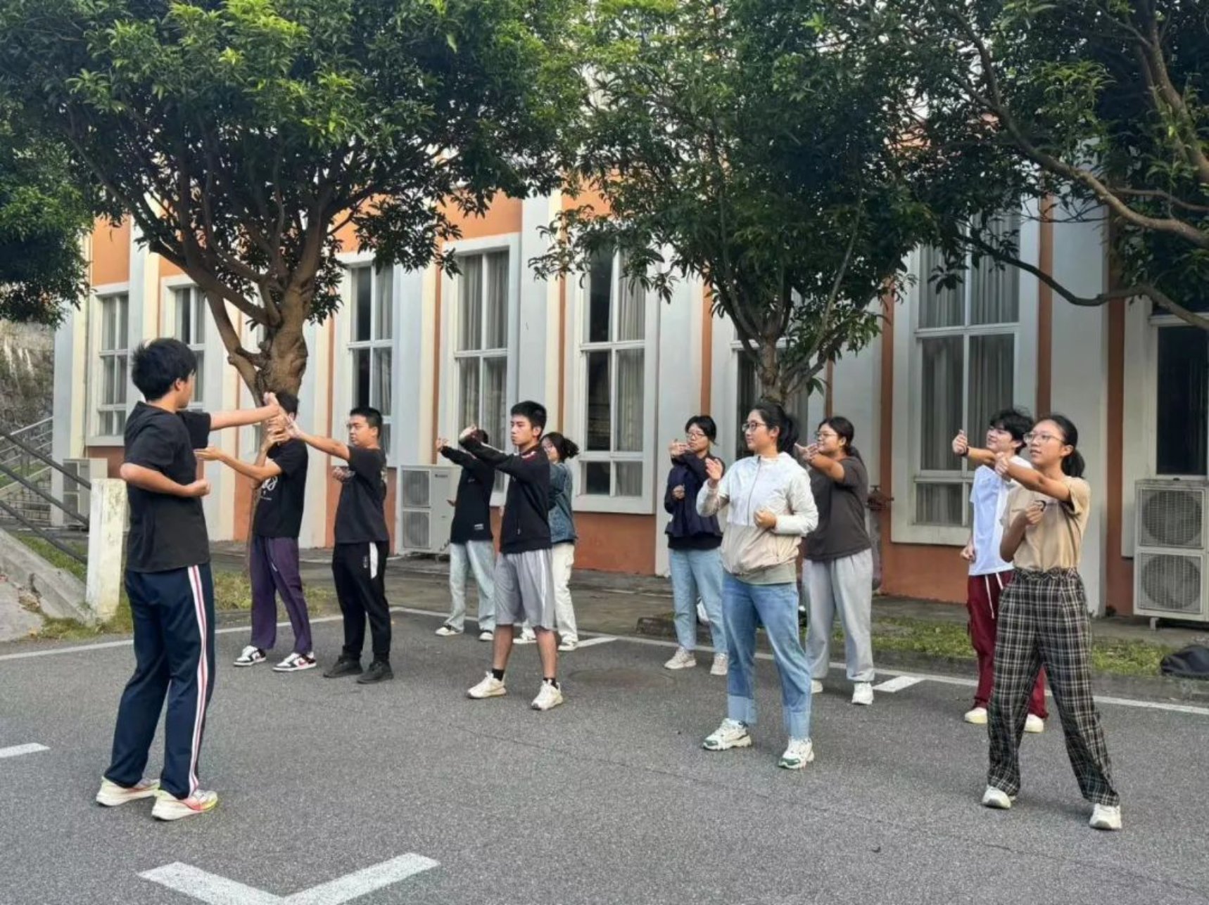 飒爽秋风拂过,清晨透着微微凉意,丝毫没有降低我院学子积极参与“朝阳之约”的热情。共同沐浴朝阳,一同追逐梦想!“文武之道,一张一弛”,活力激昂的晨跑,内容丰富的晨读,个性多彩的晨练,能让同学们以最饱满的热情,最昂扬的精神风貌来迎接新一天的学习。10月31日的拂晓,“朝阳之约”晨练活动启动,焕发着他们属于大学生青春的朝气与活力。晨练小老师,教授南粤传统武术,一群热爱传统武术的同学们整齐排列,体会传统武术文化的熏陶。相信通过此次晨练,在提高同学们身体素质的同时也增强了同学们之间的凝聚力以及团队意识。