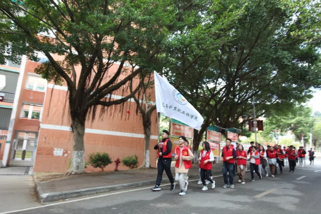 礼炮响彻云霄,彩烟弥漫天际。入场式结束后,院领导率领方阵从东操场出发,按照指定路线前进。我院方阵身着党支部红马甲,迈着矫健的步伐,精神抖擞、活力奔跑,展现了学院的活力与朝气。