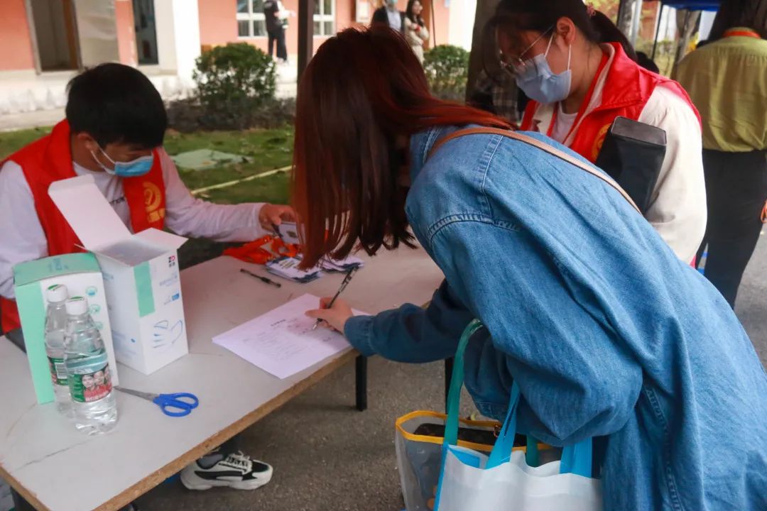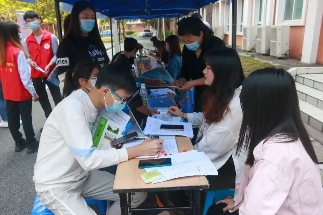 上午8:30,志愿者们提前来到了现场,紧锣密鼓的开展相关工作。由于今年疫情的影响,部分志愿者们在签到点前会给参会人员逐一进行量体温,其余的志愿者们则帮助各企业摆好相关招聘信息的展架,等待参会人员的到来。