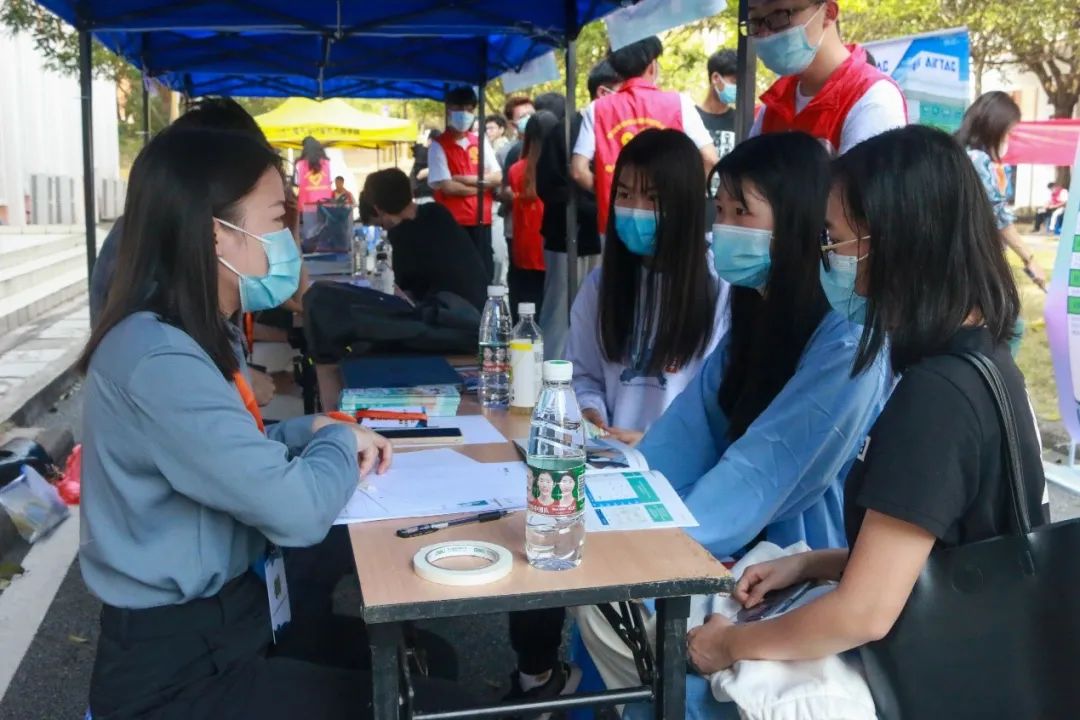 在招聘会过程中,学生们都自信地将自己的简介投递给企业的相关人员,大胆地与他们交流沟通,询问企业各方面的问题,尽可能将自己最好的一面展现给企业看,争取拿下感兴趣的工作岗位。志愿者们也为了将来能更好的就业,在现场向企业的相关人员咨询相关信息,积累求职经验。