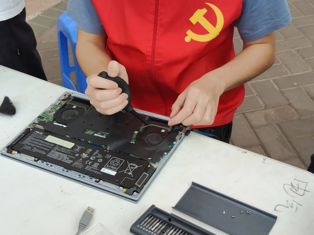 在摊位现场,可以看到志愿者们认真细致的除尘操作。通过清理电脑内部的灰尘和杂物,不仅提高了电脑的性能和稳定性,也延长了电脑的使用寿命。
