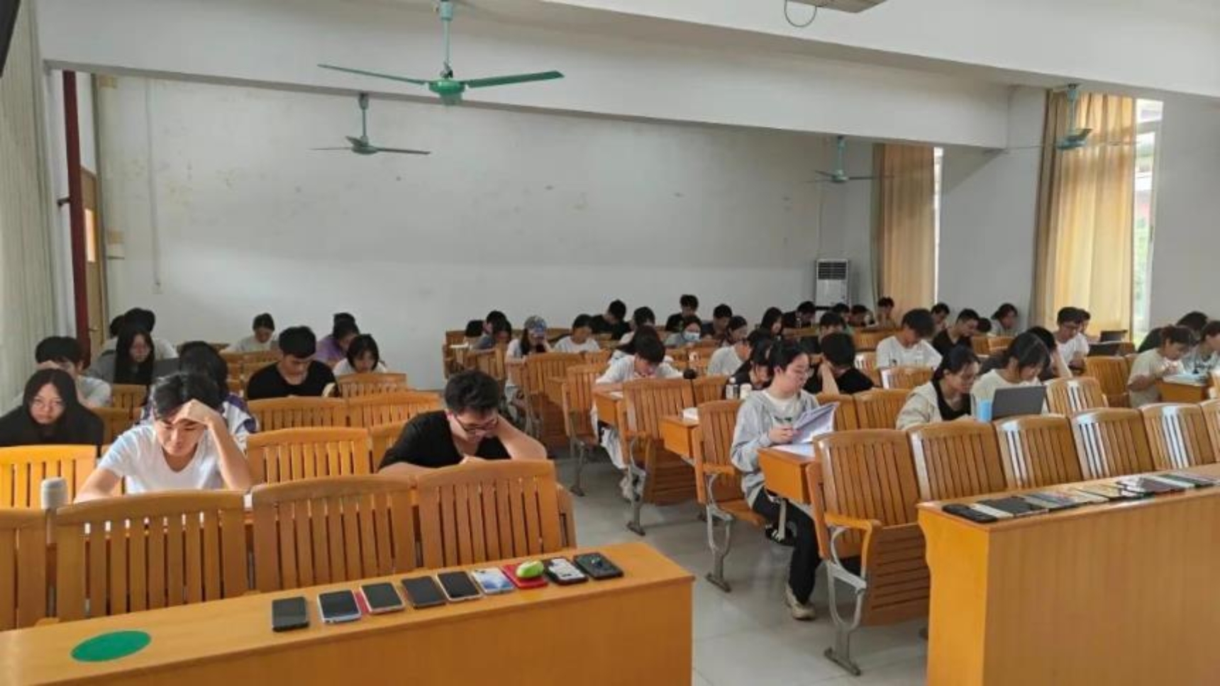 在自习室里,同学们自觉地将手机放置在指定区域,专心致志地投入到书本和笔记中。他们或专注于阅读,或认真书写,共同营造了一个安静而富有学习氛围的环境。