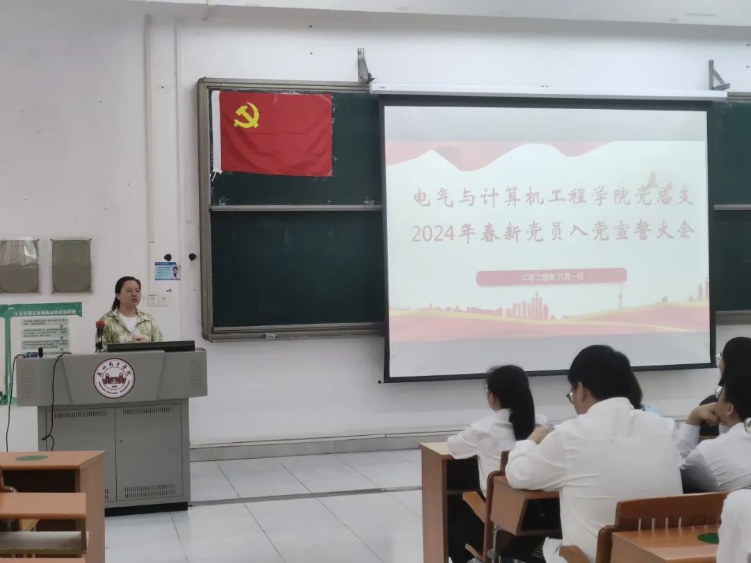 2024年6月1日,williamhill中文党总支在2教106举行2024年春新党员入党宣誓大会。本次会议由党总支副书记唐玉婷老师主持,各支部书记以及全体2024年春新党员参加。
