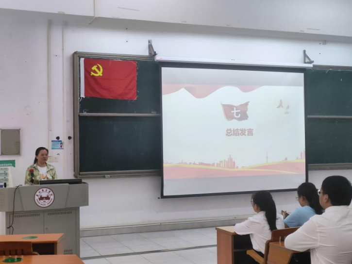 最后,唐玉婷老师作总结发言。她向参加宣誓仪式的新党员表示衷心祝贺,并向新党员提出要坚定理想信念,锤炼党性修养;转变角色心态,履行党员义务;树立远大理想,锤炼过硬本领。在今后的学习和工作中,更加成熟,更加坚定,以一颗感恩的心回报党的教育与培养。