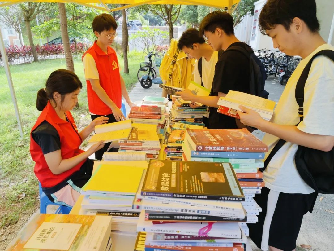 在图书漂流活动中,同学们热情参与,精心挑选心仪的书籍,交流读书心得,并互相推荐自己喜爱的书籍。现场氛围热烈,充满了学习的热情和青春的活力,展现了知识的魅力和青春的无限可能。