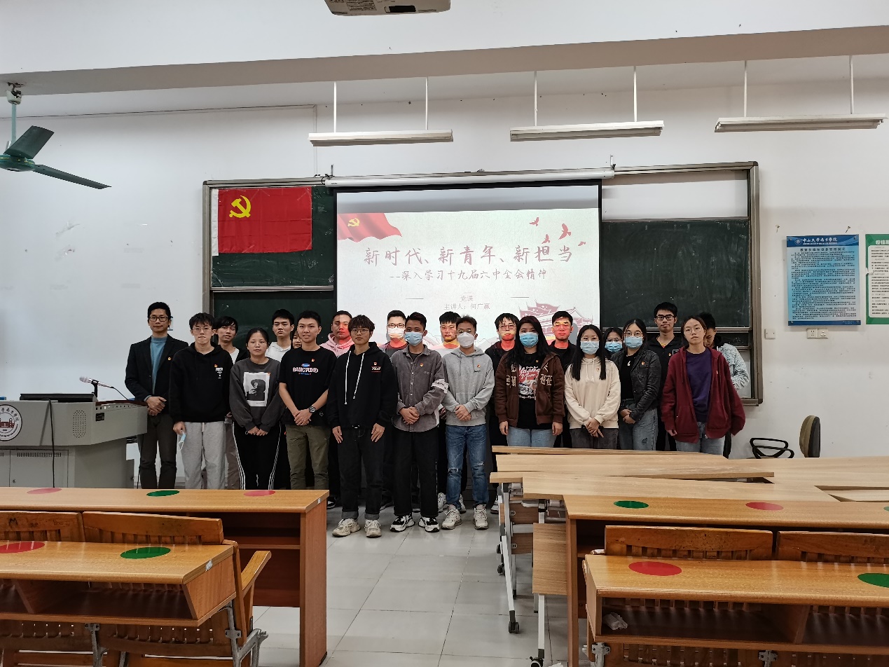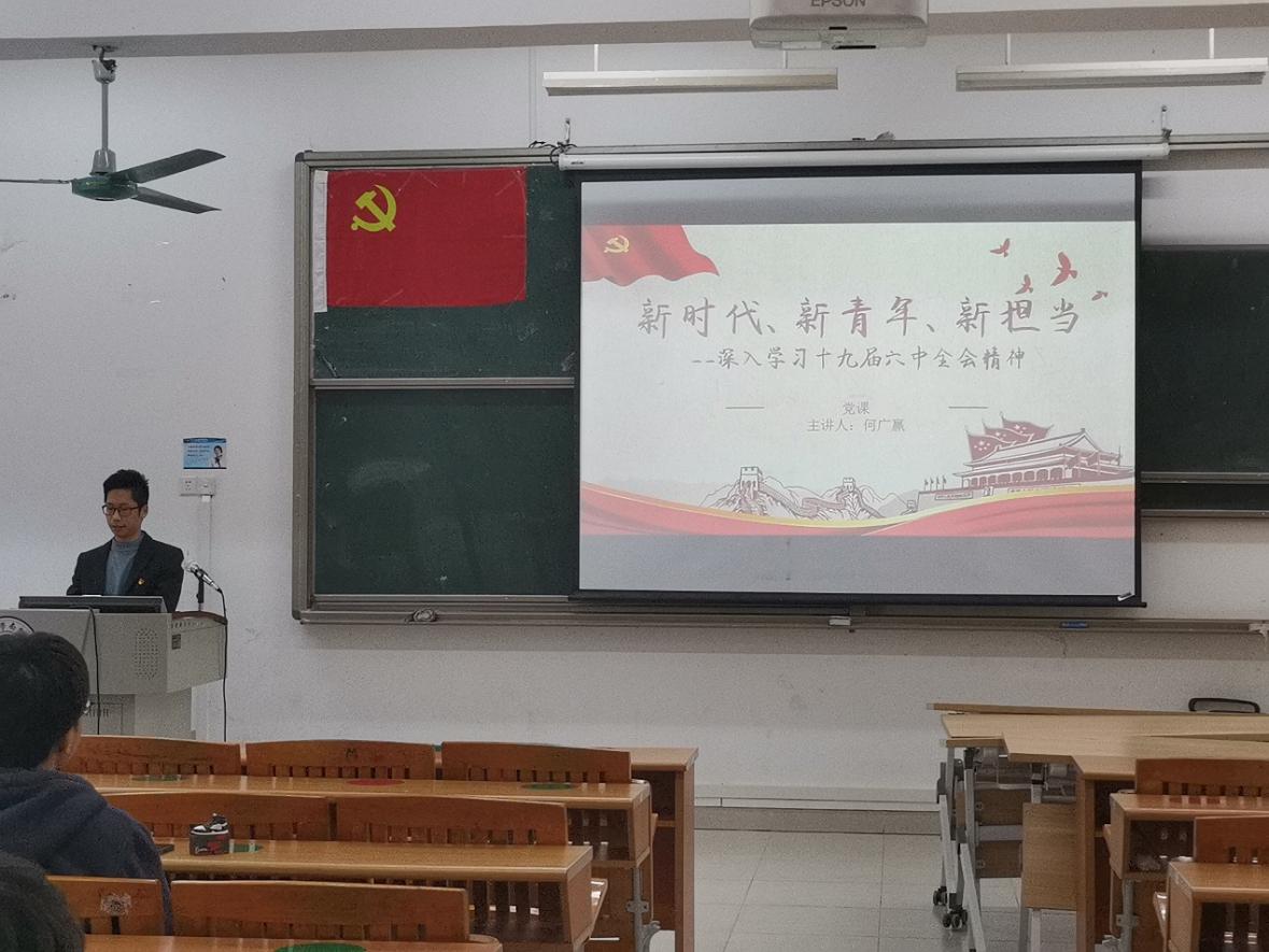 首先,何广赢老师向全体同志介绍了党的十九届六中全会。通过对党的十九届六中全会内容的讲解,带领大家一起感悟十九届六中全会的精神,并希望在座的学生党员作为新时代的先锋模范,要做到思想的与时俱进。