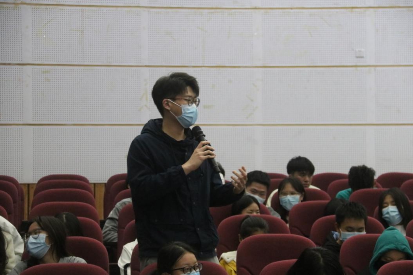 台上的同学妙语连珠,为观众带来一个又一个异彩纷呈的脱口秀节目。在每位选手展示完毕后,工作人员进行计分。会场内进行了一场别开生面的击鼓传花(话筒)游戏。游戏内容即观众按照传话筒形式进行,在主持人喊停的情况下,拿到话筒的观众表达自己的感触。