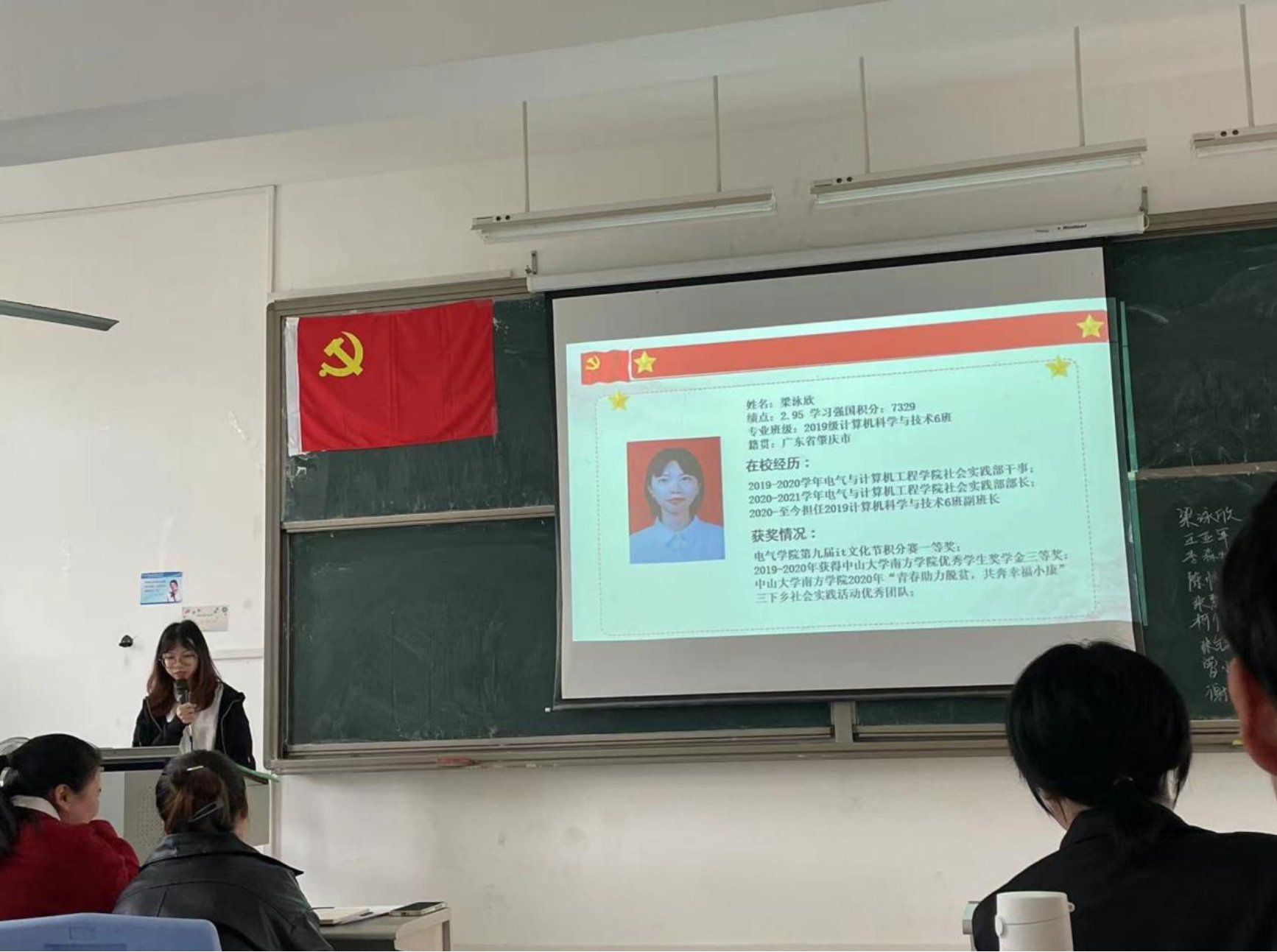 接着,梁泳欣等9名发展对象分别汇报了个人履历、入党动机,并宣读了入党志愿。