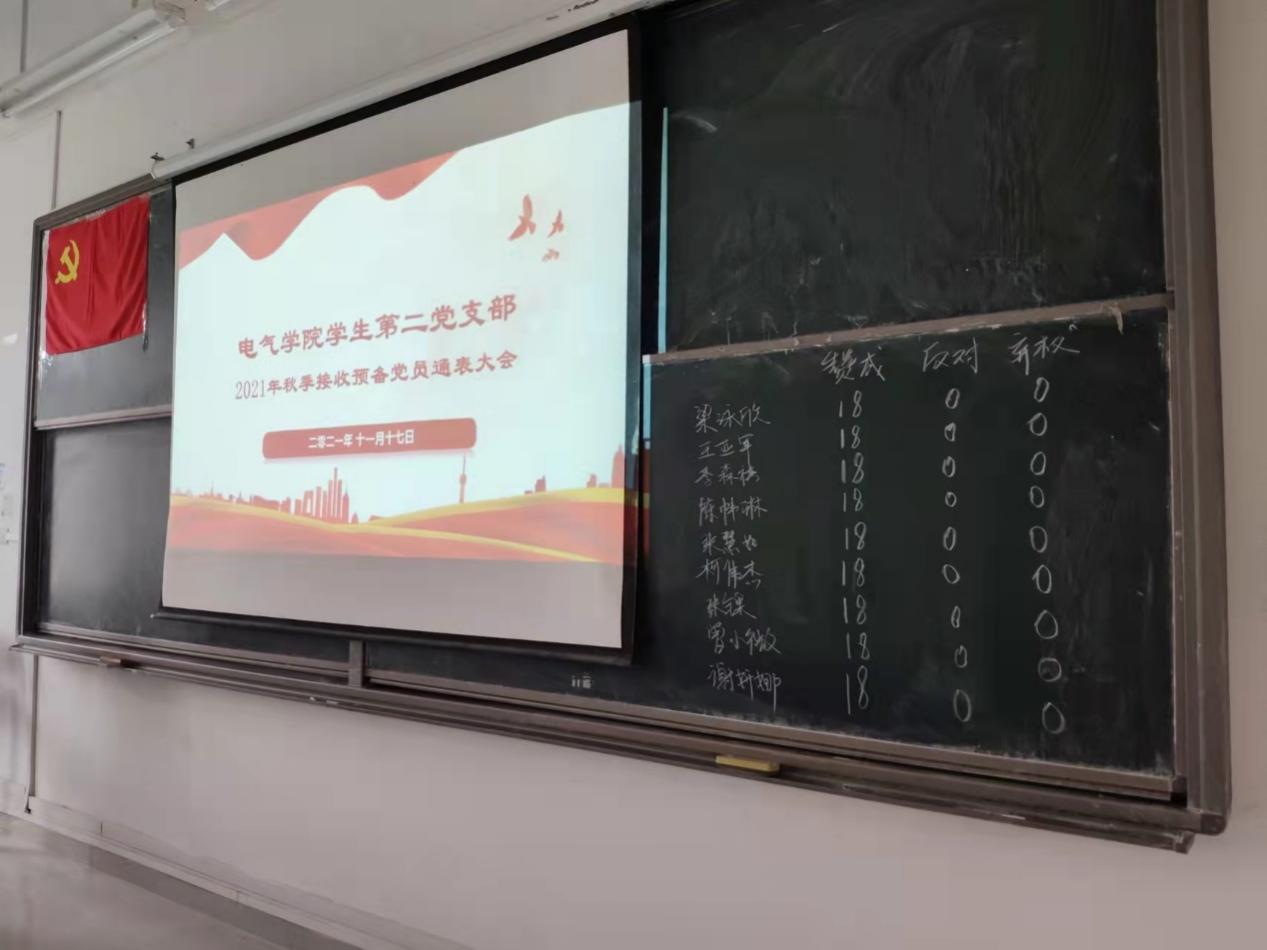 党支部严格按照会议流程,对上述9名发展对象进行逐一投票和表决。经表决,同意接收梁泳欣等9名同志为2021年秋季预备党员。会后,本支部将按程序报上级党组织审批。