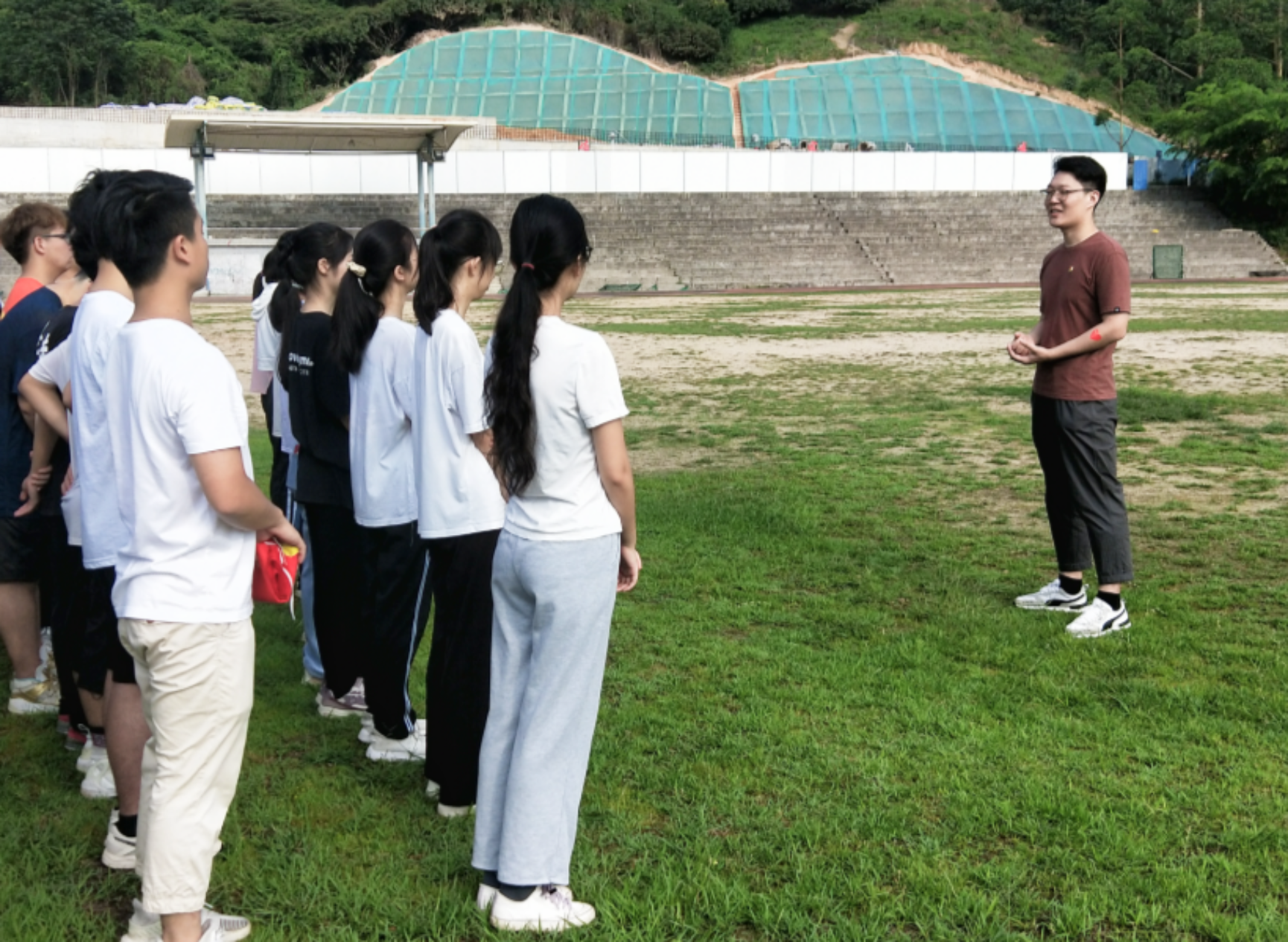 在晨跑结束后,大家在操场上围站成一个半圆,共同参与党史小课堂的学习。各个学习小组按顺序派出一名组员向大家分享党史以及与五四运动相关的知识。