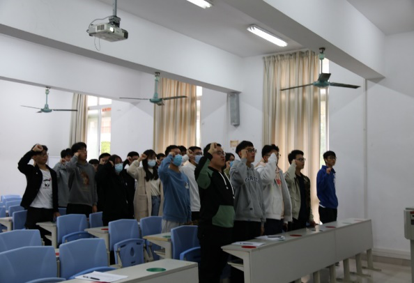 其次,团课小老师为同学讲解了关于团徽、团旗、团歌、团员证和入团誓词的主要内容,让大家理解他们的组成和用意,并告诉他们团员证是每位团员身份的象征,团旗是共产主义青年团的象征,他们都是庄严且神圣的。并带领全体团员一起重温入团誓词,忆入团初心,牢记团员使命。