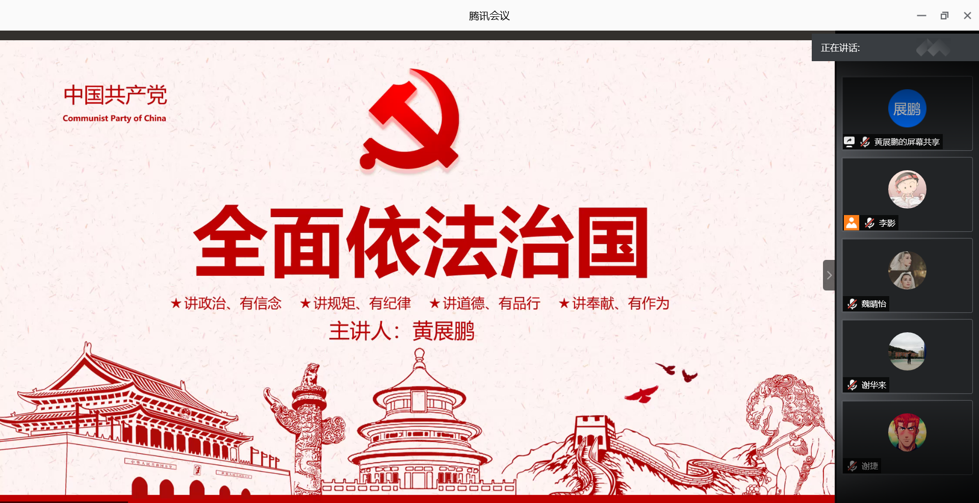为响应“党十九大”中提出的《深化党和国家机构改革方案》,电气学院学生第一党支部第二小组的党员和入党积极分子于12月29日的晚21:00在线上开展了以“全面依法治国”为主题的学习分享会。