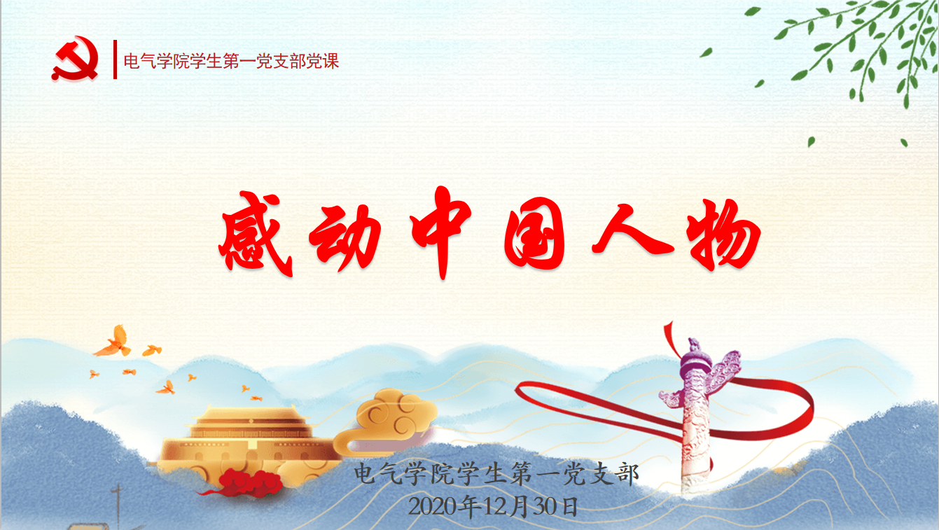 为加强党员同志的党性修养,传承感动中国人物的精神。2020年12月30日13:30,电气学院学生第一党支部在3教403开展了“忆感动中国人物”为主题的党课。本次党课由支部支部宣传委员麦淳铭同志主讲,支部全体党员共同参与。