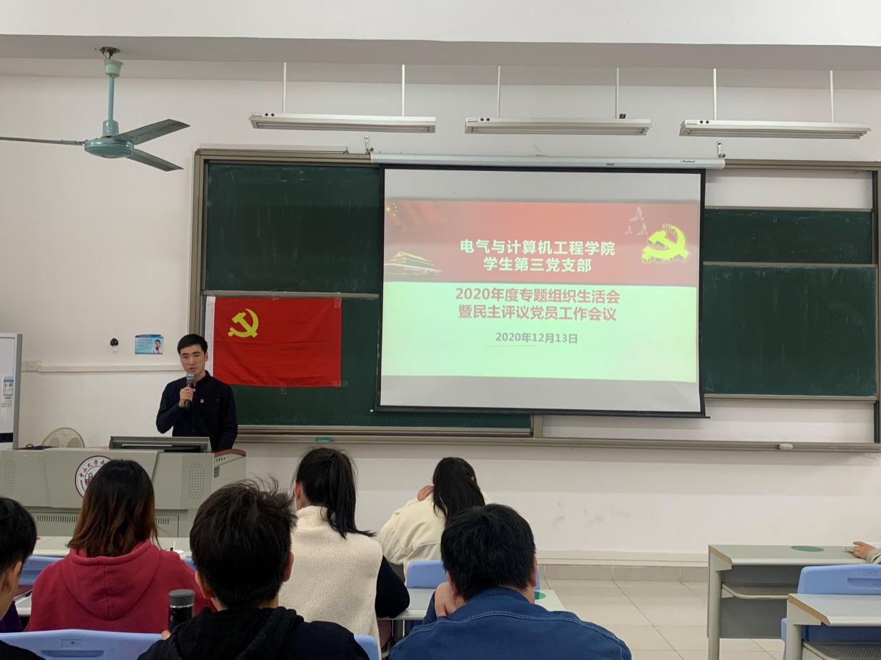 为了深入学习贯彻习近平新时代中国特色社会主义思想,认真检视问题,坚持实事求是,激励学生第三党支部党员凝聚正能量,以求真务实的作风推动支部的工作。2020年12月13日上午9:00,williamhill中文学生第三党支部于4-305召开了2020年度专题组织生活会暨民主评议党员工作会议。