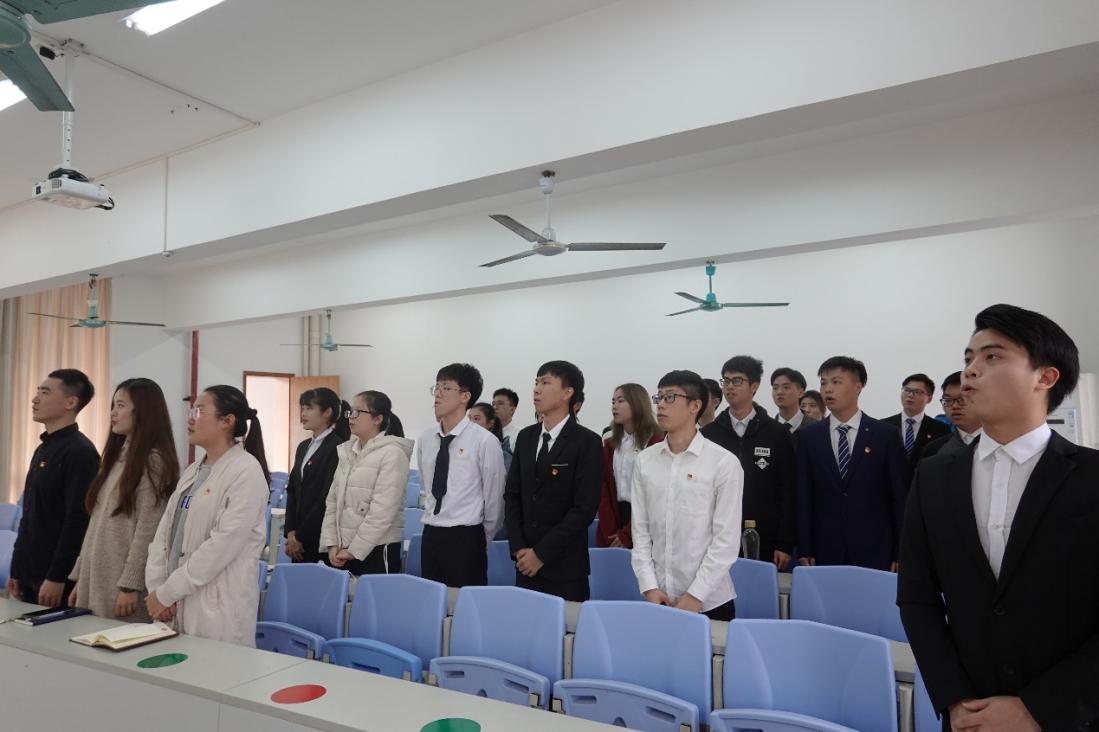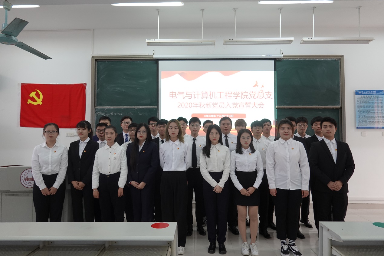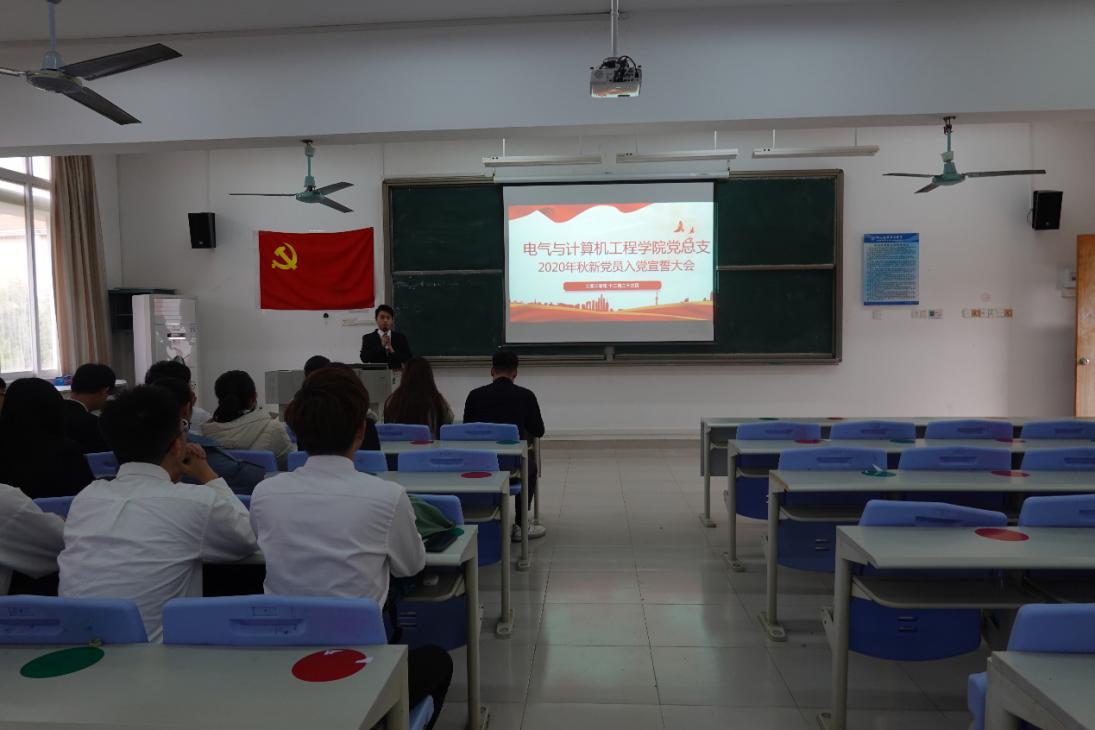 本次大会由电气学院学生第一党支部宣传委员麦淳铭同志主持,参加仪式的有我院党总支青年委员孙大伟老师、辅导员万倩老师、辅导员刘丁嘉老师以及我院24名新党员。