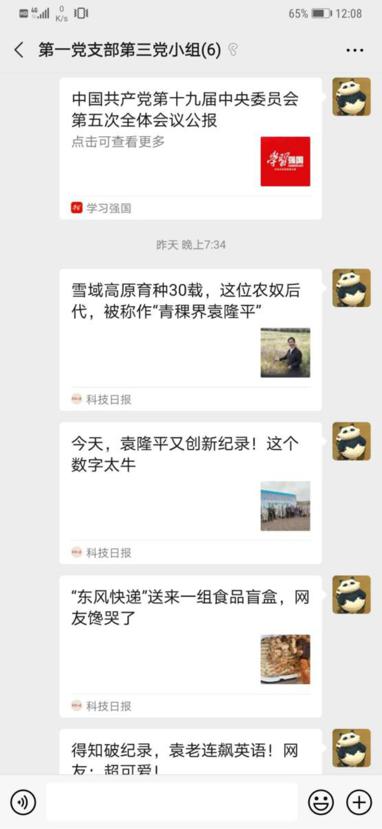 为了讨论学习最近发生的袁隆平团队研究的第三代杂交水稻亩产超过1500公斤,对于中国的军事、人民的生活;对于世界起到了什么影响。2020年11月4日19点10分,电气学院学生第一党支部第三党小组开展线下学习讨论会议。