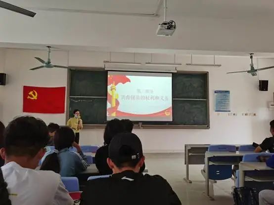 紧接着,向同学们介绍了共青团员的六项权利和六项义务,以及共青团在现阶段的基本任务的内容,讲解加入共青团的条件和入团流程。并与在场的同学们进行互动,提出关于入团的相关知识以及团费缴纳等问题,同学们积极参与课堂互动并积极回答相关问题。
