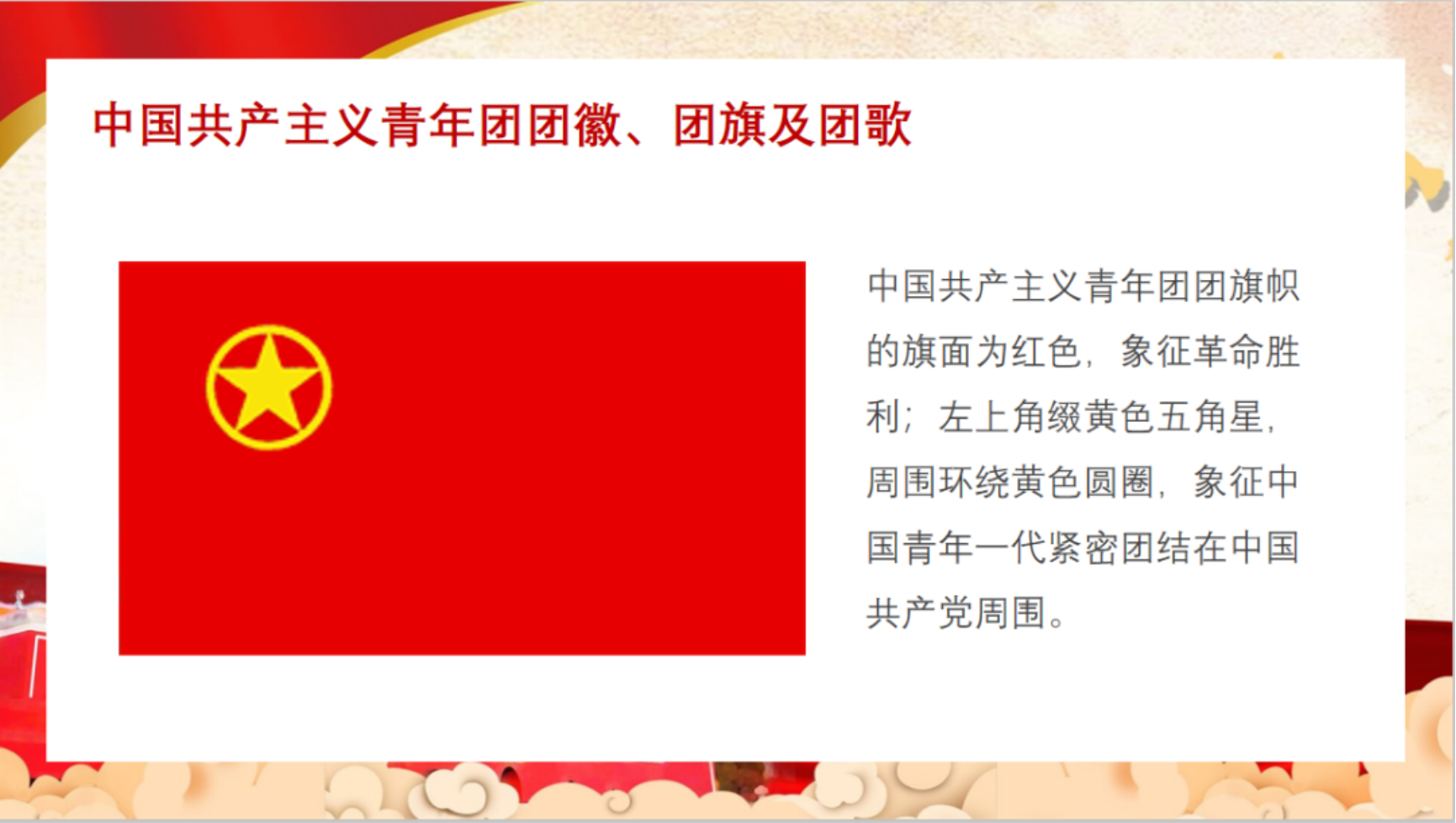 团课小老师讲到,身为团员,处在共青团这个组织中,我们要清楚了解共青团成立的历史背景和发展过程,增强个人的团员意识,奠定思想基础。