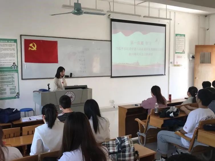 会议最后,学生第二党支部书记陈金涛老师做了总结发言,陈老师指出党员们在组织上入党是一生一次,而在思想上入党是一生一世的。她提出不管以后从事什么工作,都希望在能够保持学习的心态,学习理论知识,学习党的政策纲领,学习用知识理论去武装头脑。勤于思考,融会贯通,再把学到的知识化为力量,做到知行合一。