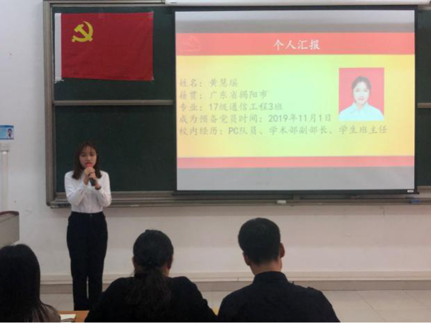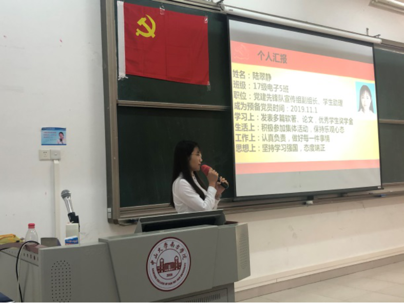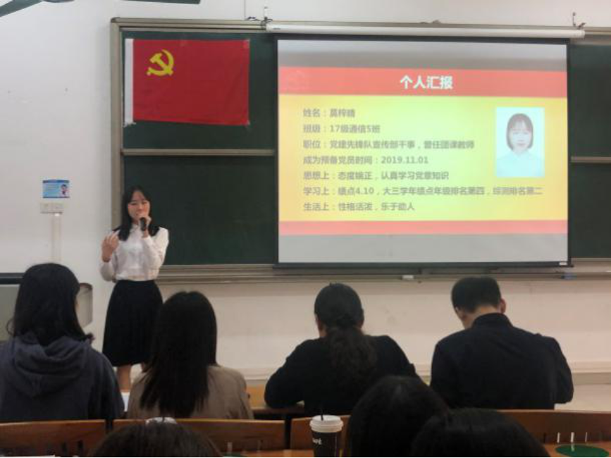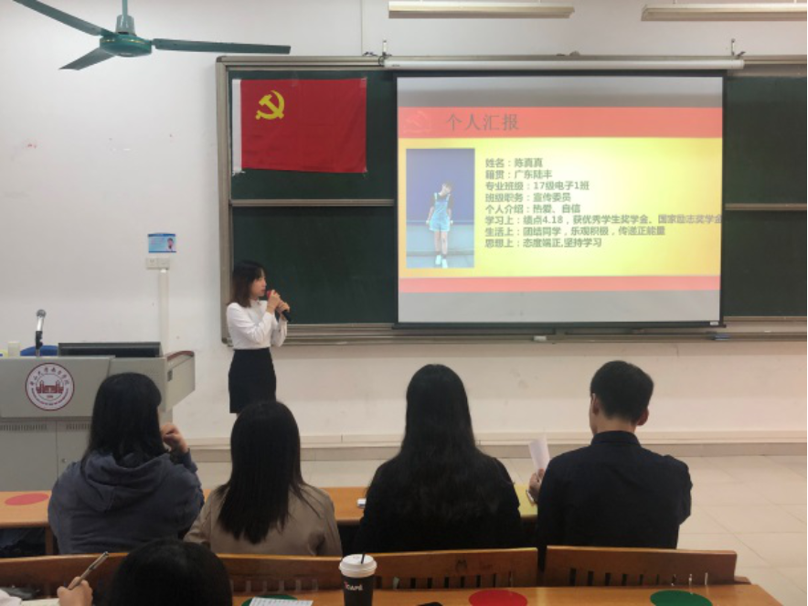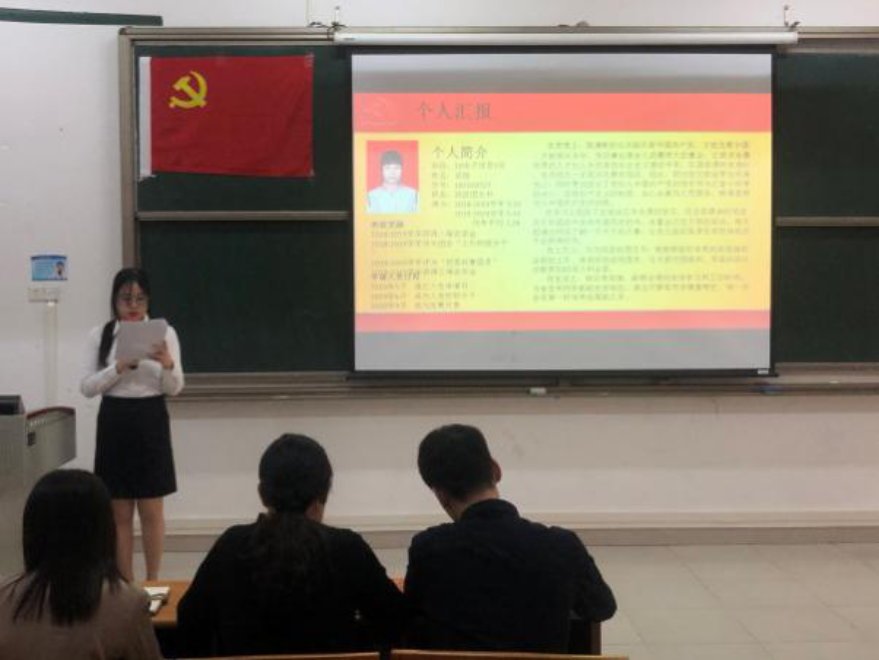 陈真真等9名同志依次上台汇报自己这一年来的思想、工作、生活与学习四个方面,以及汇报了对自身对党的认识与个人在预备期期间的进步。党组织严格按照会议流程对这9名同志进行逐个审查、讨论、投票和表决。经会议表决,同意陈真真等9名同志按期转为中共正式党员,会后本支部将按照程序上报学院党总支审批。