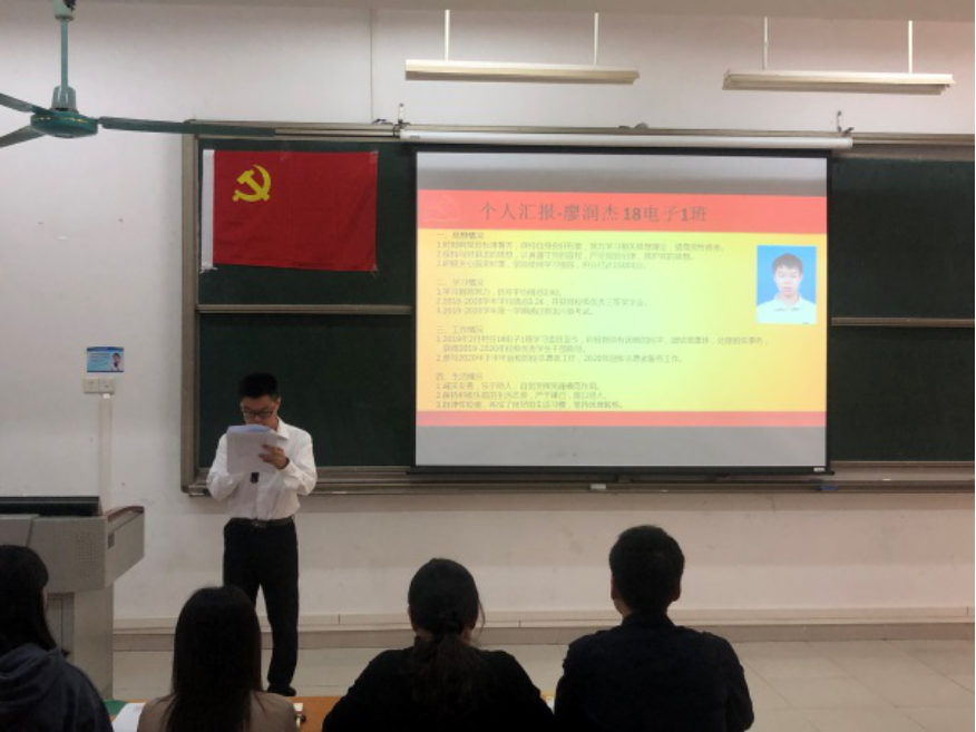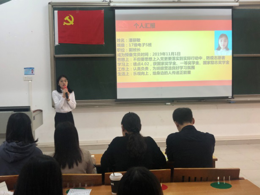 本项会议是针对2019年秋季预备党员向党支部提出书面转正申请的问题进行了讨论。2019年11月1日陈真真等9名同志经支部大会讨论表决,同意接收为预备党员,至今预备期已满一年。根据《中国共产党发展党员工作细则》第三十三条预备党员转正手续的相关规定,设定了预备党员转正讨论的流程。
