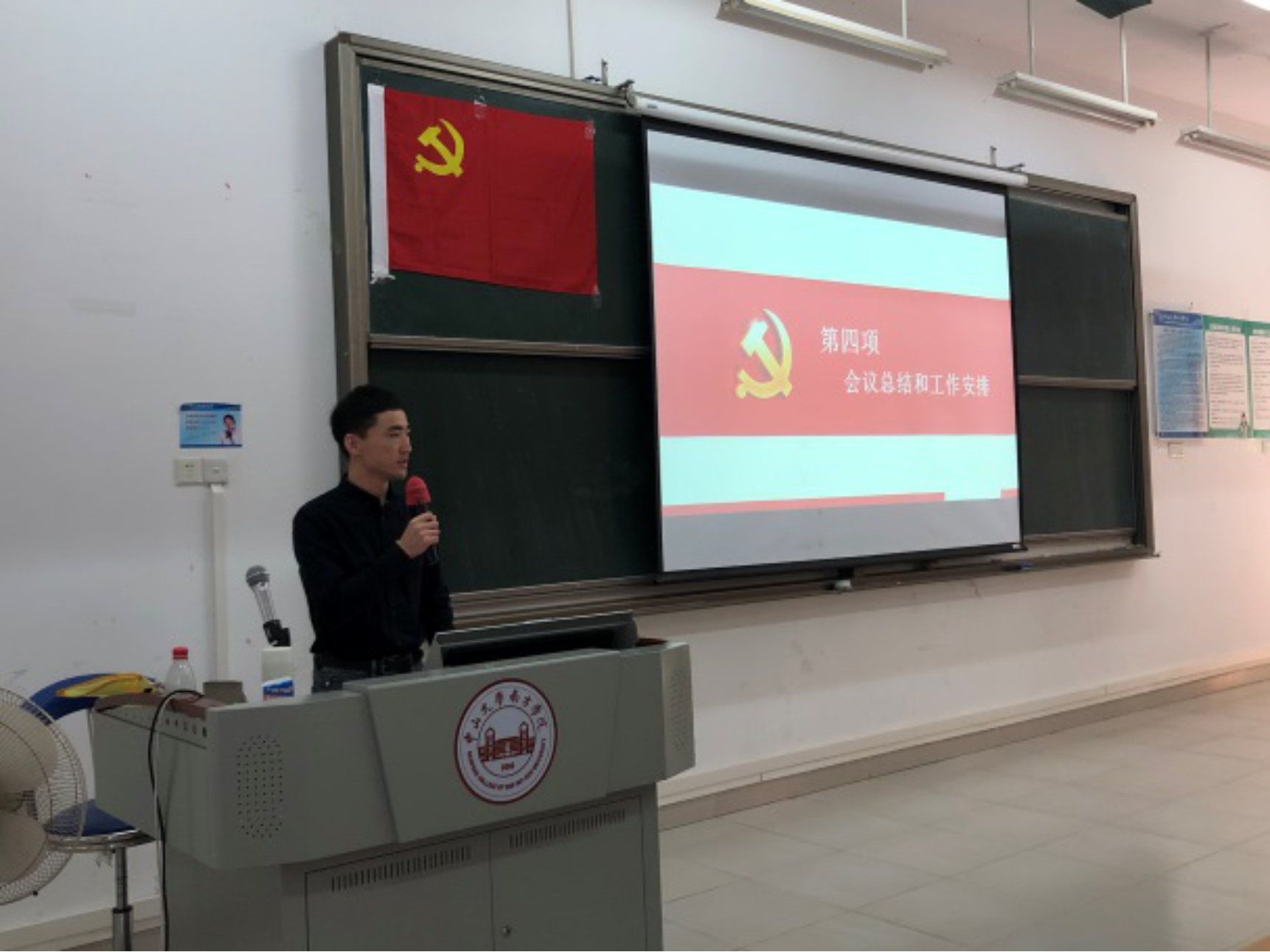 由孙大伟老师进行会议总结和工作安排。老师首先讲述了后期的工作安排,继续严格落实“三会一课”制度,加强学习小组建设,继续发扬支部爱学习、讲服务、会创新的优良作风。鼓励大家积极参与组织生活,集思广益丰富和创新组织生活。孙大伟老师热情介绍了学习强国对我们学习政治时事的益处,作为党组织学习生活的重要部分,希望各位同志应坚持认真学习,并让新预备党员同志们加入学习强国的学习群中,参与排行榜,提醒他们坚持学习,提高自身政治素养。最后,孙大伟老师希望新预备党员们再接再厉,在预备期好好表现,早日成为一名合格的共产党员。