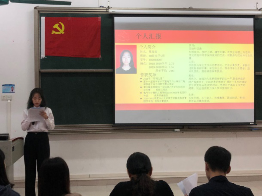 接着,黄泳嘉等6名同志依次宣读了自己的入党志愿书,汇报了自己对党的认识和自身的入党动机并表明自己的入党决心。党组织严格按照会议流程对这6名同志进行逐个审查、提问、讨论、投票和表决。
