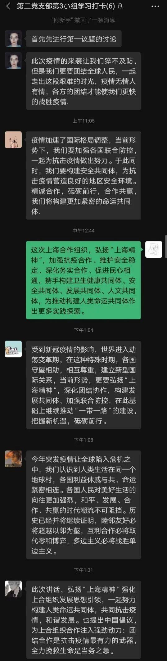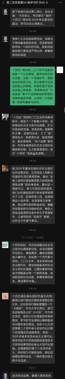 电气学院学生第二党支部第三党小组于2020年11月15日11时在线上微信群开展本月党小组会议,会议由学生第二党支部第三党小组何新宇同志组织,李钰盈同志、李琳同志,谢晓煌同志,卢文珠同志,胡贝贝同志共同参与。