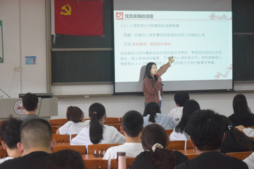 最后,张文婷老师对入党积极分子们详细讲解了党员的发展程序与阶段,共分为五个阶段二十五个步骤。同时为大家介绍了入党过程中的党籍材料,党籍材料是党员身份的标识,不仅对党员发展有重要意义,也对管理党员、推动党建工作有着宝贵价值。
