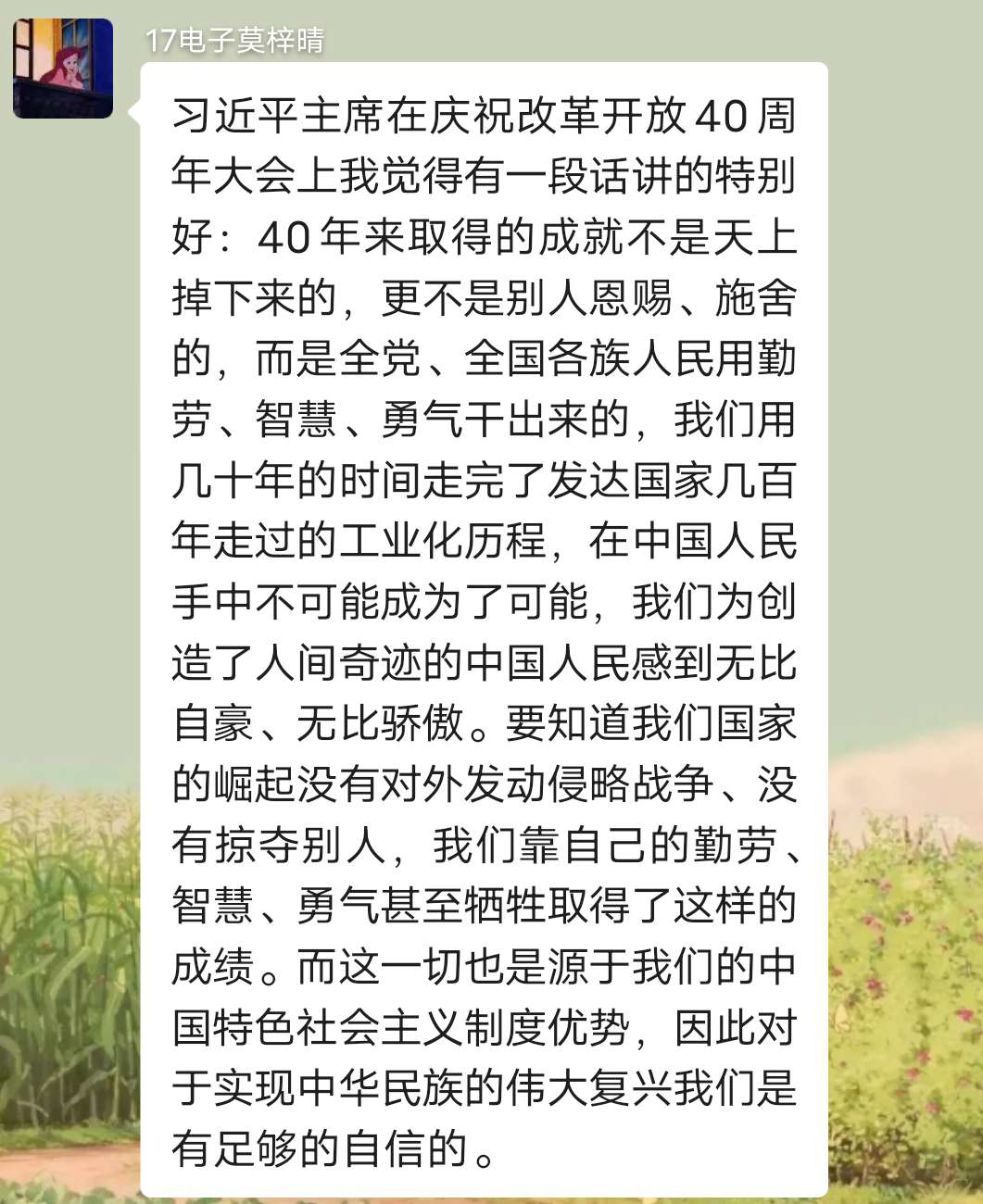 刚好最近看到一个引起讨论的事情,松下新入职员工因朋友圈发勿忘国耻被领导警告离职。我特别喜欢这位员工的一句话“我接受不了这样的企业文化,而且我觉得自己政治觉悟没有什么问题。哪怕是日本企业也要尊重历史,尊重过去,作为中国人更应该如此。如果可以,我现在就办理离职手续。”九一八是国耻日,也是纪念日,更是觉醒日,作为中国人民我们要铭记历史,一寸山河一寸血,以史为鉴,勿忘国耻,砥砺前行。