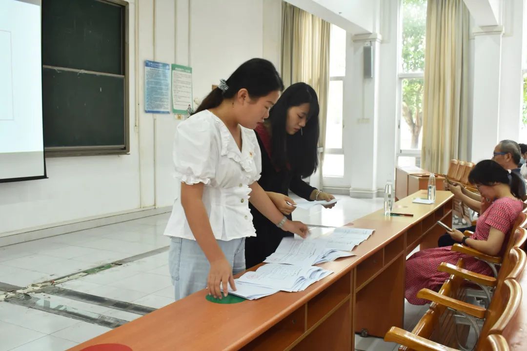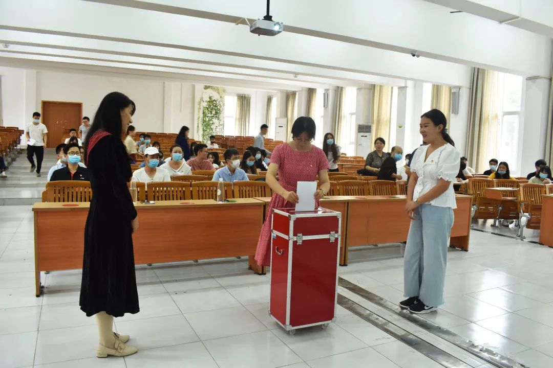 唐玉婷老师向各位党员同志宣读此次换届《选举办法》,参会党员表决通过。经推荐、酝酿、举手表决一致同意曲楠楠、万倩同志分别为监票人和计票人。结合实际,按照差额选举要求,经过上级党组织审批后,确定党总支委员会委员候选人预备人选为:杨智同志、唐玉婷同志、苑俊英同志、钟晓婷同志、孙大伟同志、何广赢同志。