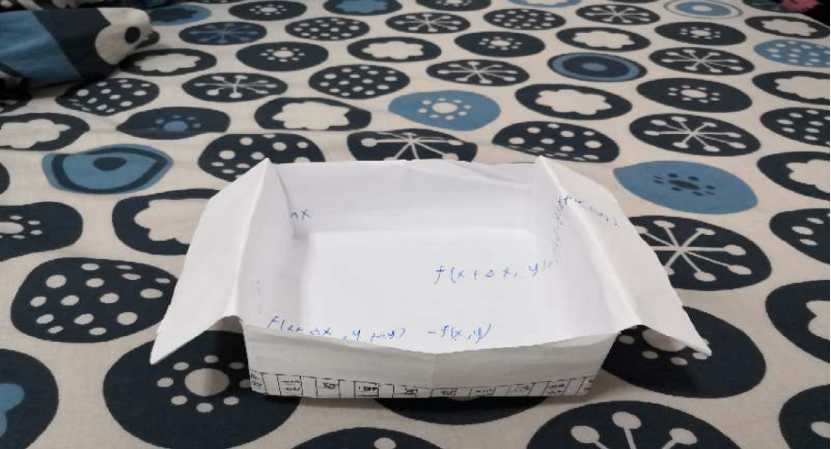 林泽盛:将所用的草稿纸,撕下来的日历纸,收到的传单纸等等废纸,可以折成一个盒子,可以拿来当收纳盒,也可以拿来装垃圾,而且折成盒子还简单不费力,能让废纸二次利用,变废为宝。