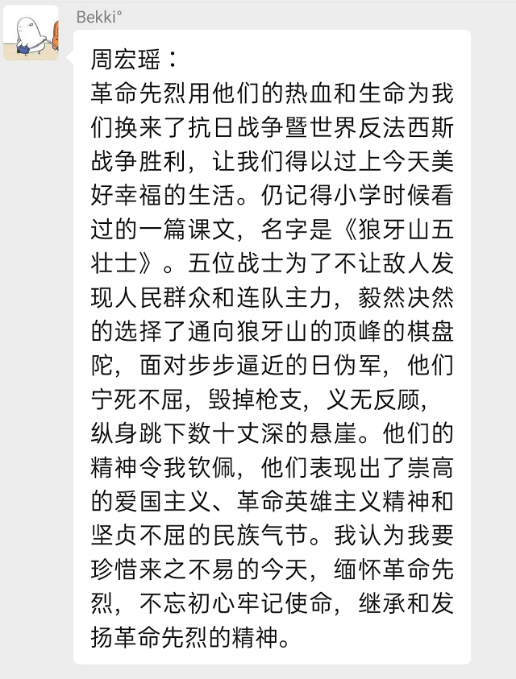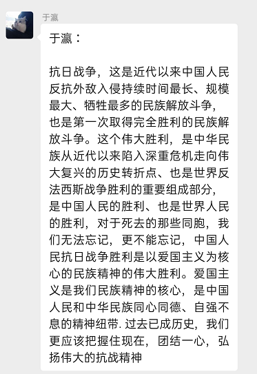 2020年9月11日20:30,电气学院学生第二党支部第二党小组于线上开展学习习近平总书记在纪念中国人民抗日战争暨世界反法西斯战争胜利75周年座谈会上的讲话心得交流会。本次会议由学生第二党支部第二党小组黄锋彬同志组织,周宏瑶同志、陈诚同志、黄家俊同志以及于瀛同志共同参与。