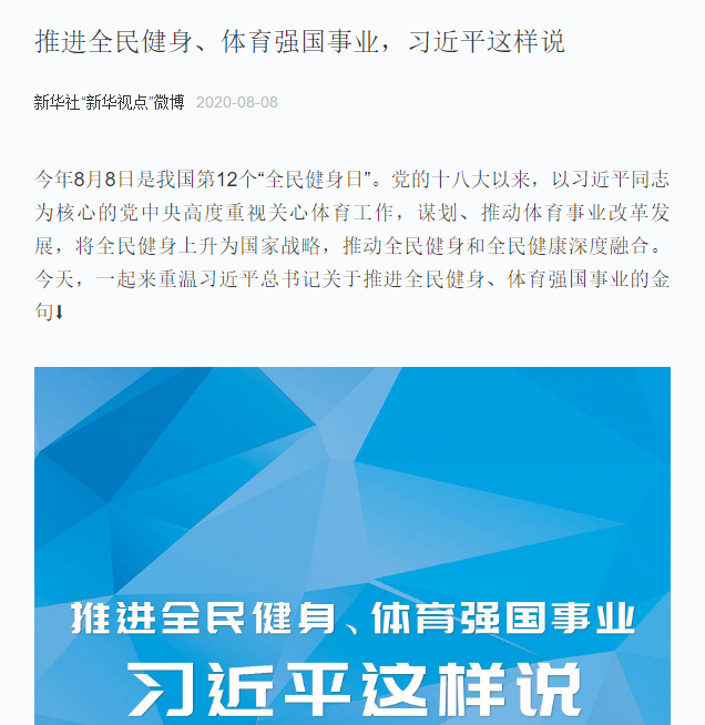 全民健身日是指2009年10月1日起施行的《全民健身条例》第十二条中规定的,应当在当日加强全民健身宣传,积极组织和参与全民健身活动,组织开展免费健身指导服务,向公众免费开放公共体育设施的活动日。具体时间为每年的8月8日,即是为了纪念北京成功举办奥运会,也是为了倡导人民群众更广泛地参加体育健身运动。会议中小组成员纷纷表示会时刻注意健身,即使忙也要抽出时间锻炼身体!
