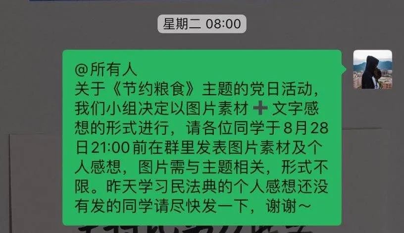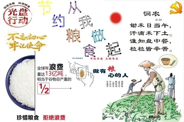 为了响应党中央的号召,我院学生第三党支部决定开展以节约粮食为主题的党日活动,以党建带团建的形式来让身边更多的人意识到珍惜粮食的问题,让我们以行动来实践这一号召。