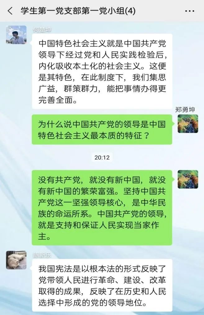 2020年07月17日20点00分,电气学院学生第一党支部第一党小组,开展线上学习讨论,小组所有成员就习近平总书记重要讲话《中国共产党领导是中国特色社会主义最本质的特征》进行学习和讨论。