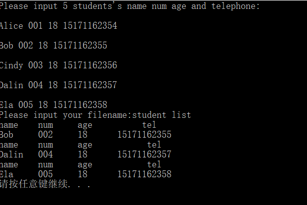 printf("Please input %d students's name num age and telephone:\n",SIZE);