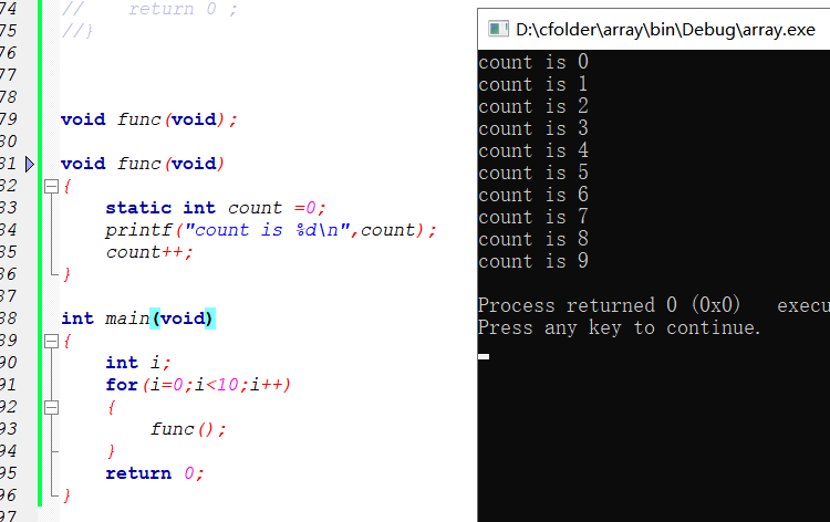 使用static来声明局部变量,那么就可以将局部变量指定为静态局部变量。