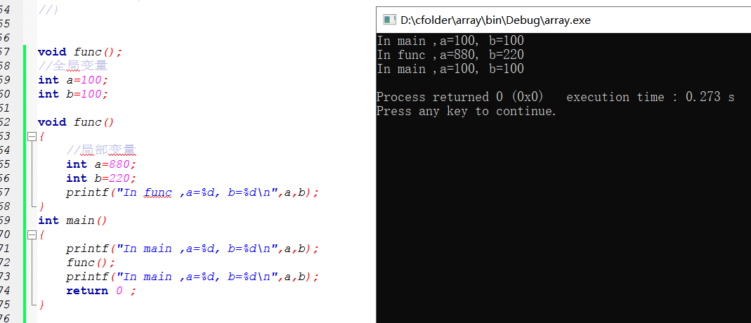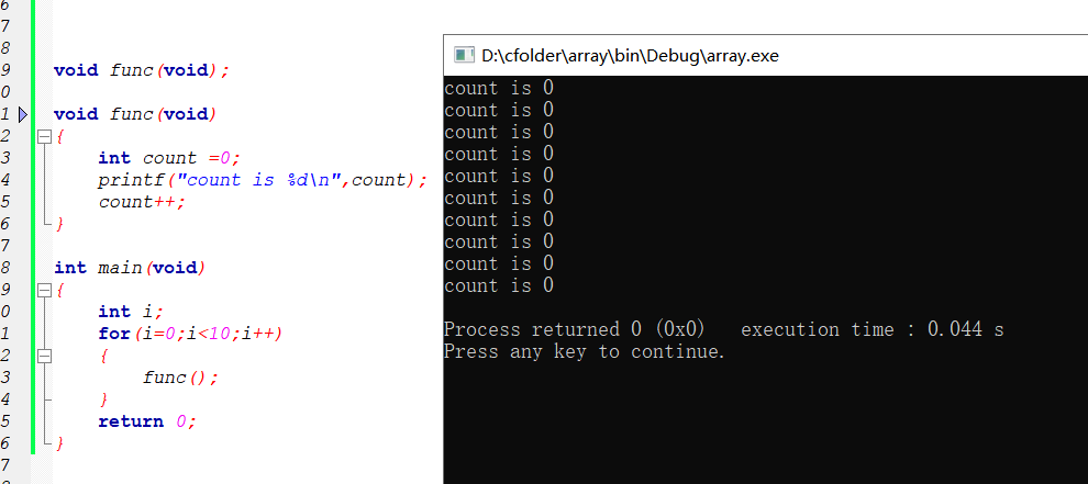 具有代码块作用域的变量一般情况下属于自动存储期。属于自动存储期的变量在代码块结束时将自动释放存储空间。