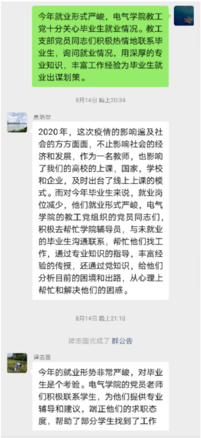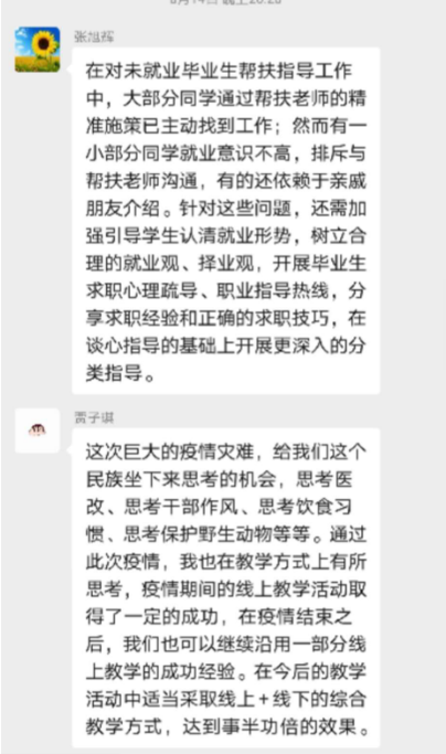 坚持“不忘初心 牢记育人使命”,今年在新冠肺炎的冲击,教学工作以及毕业生的就业。为了降低受到的影响,一方面积极开展了在线教学,另一方面积极努力为了使毕业生尽快去到相应工作岗位上,组织对应专业教师进行点对点帮扶指导,为未就业毕业生提供思想指导和经验分享。