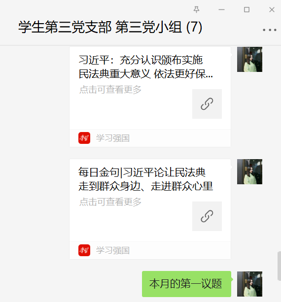为深入学习颁布民法典实施的重大意义以及了解新冠灭活疫苗研发情况,williamhill中文学生第三党支部第三党小组在2020年6月20日,以线上的方式在“腾讯会议”APP上开展党小组会议。本次会议由第三党小组的马泽薇同志主持,第三党小组全体党员出席会议,会议共开展三个部分。