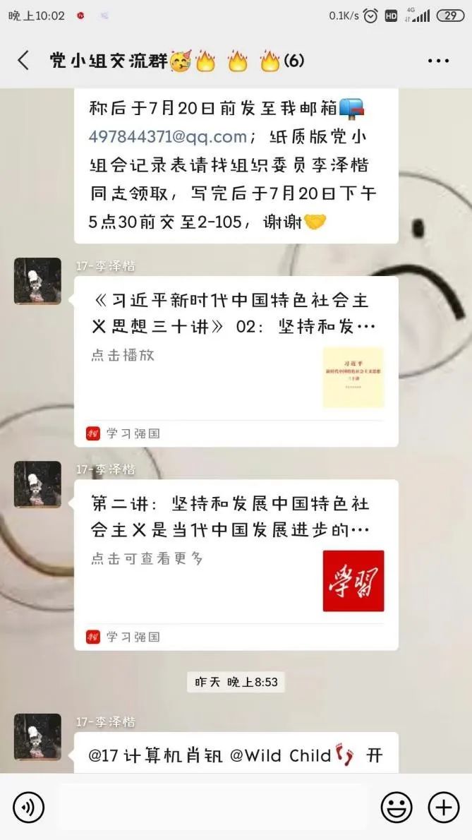 为增强支部学生党员、积极分子之间的联系,在即将到来的暑期做好个人提升计划。2020年7月18日晚上21时,电气学院学生第二党支部第一小组所有成员在线上开展暑期个人提升计划交流会。