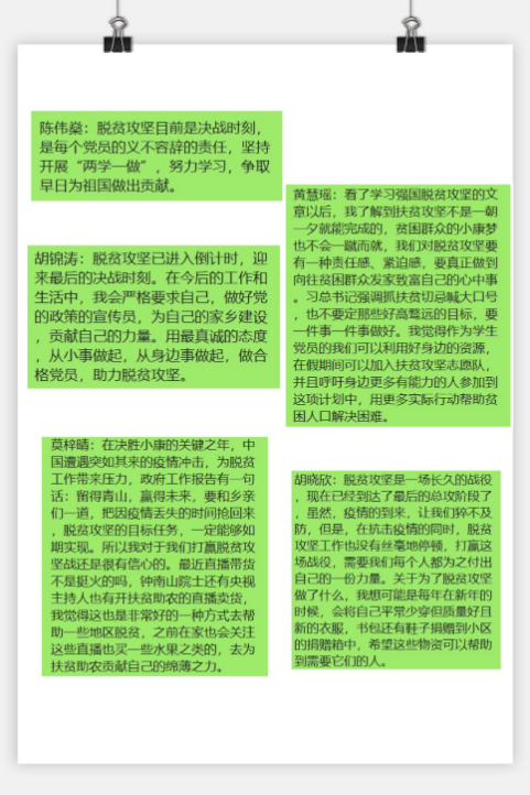 为了深入学习贯彻全国两会精神,增强学生党员的法治意识,学生第三党支部第四党小组于2020年6月21日晚上09:00通过“腾讯会议”平台,开展了线上主题学习会议。本次会议主要以线上学习和感想交流的方式进行,共分为三个环节:第一议题学习、学习关于脱贫攻坚文章及小组关于寄语中高考学生的交流分享。